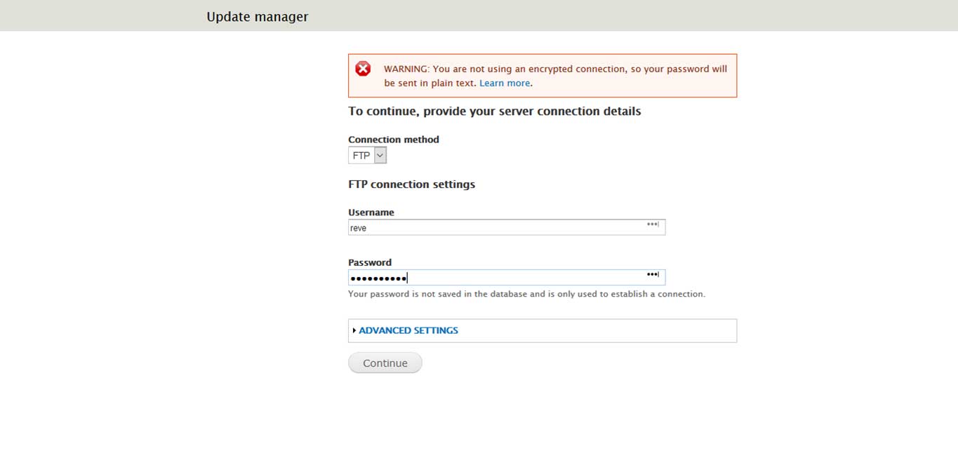 For some case, you may need to provide your FTP credentials. Please provide this and click “Continue”