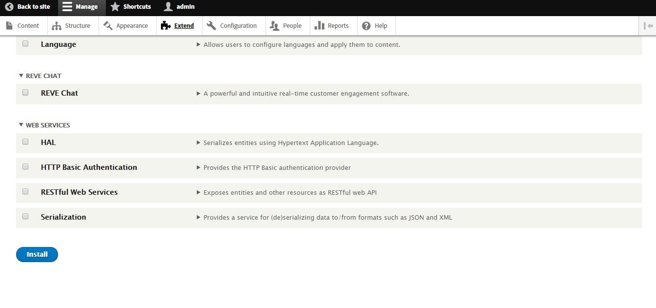 then choose the downloaded REVE Chat modules zip file and click on ‘Install’ button to install the module.