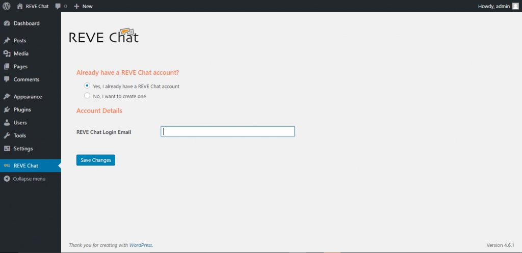 If you already have a REVE Chat account, please choose “Yes, I already have a REVE Chat account” and provide SignUp email address. Otherwise, you can also choose “No, I want to create one”to create a new account.