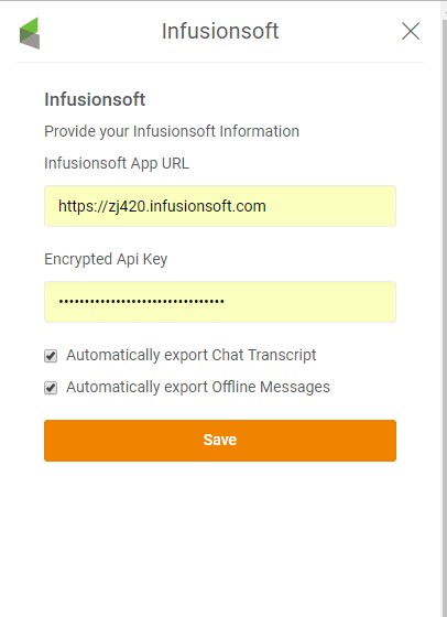 Live chat app integration with Infusionsoft CRM allows live chat agents to transfer customer information from chat window to customer database with a single click.