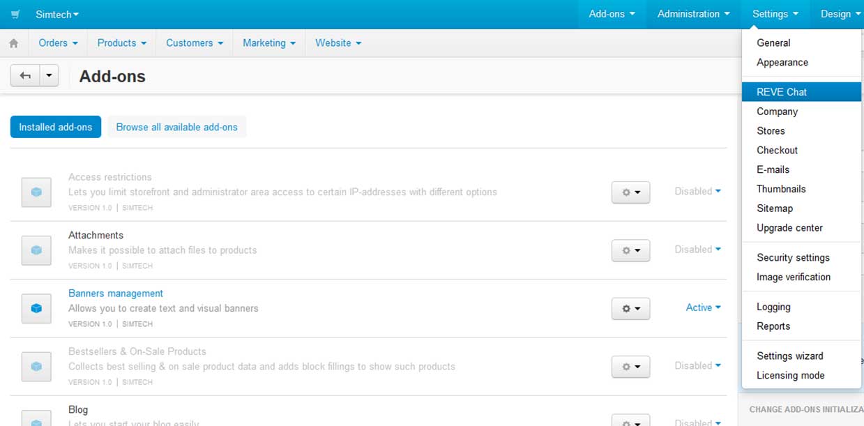 CSCart Ecommerce Integration with the REVE Chat Omnichannel Platform.