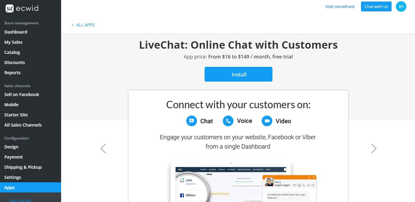 Integrating Live Chat app in ECWID powered store enables you to interact with website visitors in real time and solve their queries.